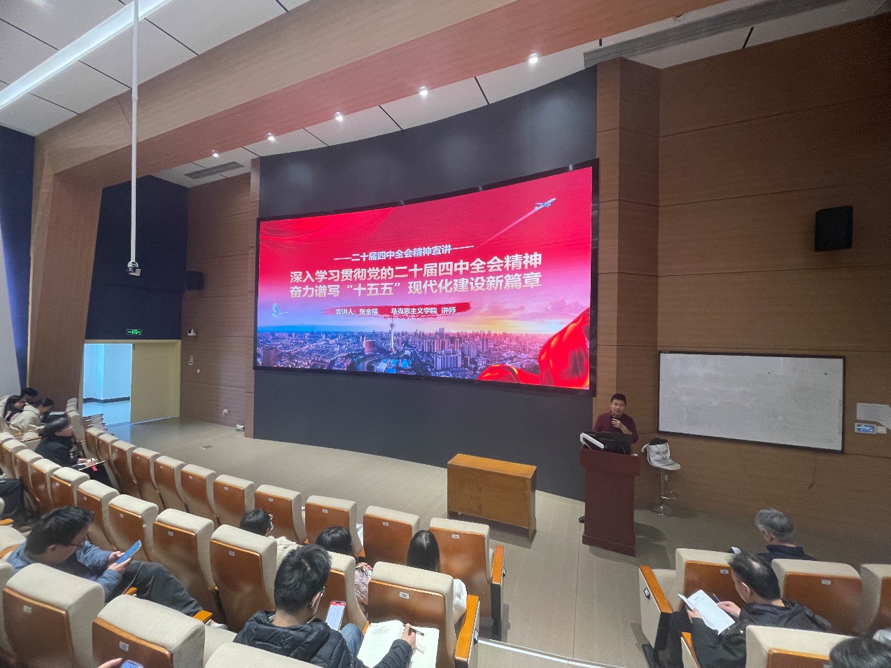 为深入学习贯彻党的二十届四中全会精神,凝聚奋进“十五五”新征程的智慧力量,12月3日下午,创新中药研究院特邀马克思主义学院张金福老师,在6号楼6304室为全院师生作了一场主题鲜明、内涵深刻的专题辅导报告。